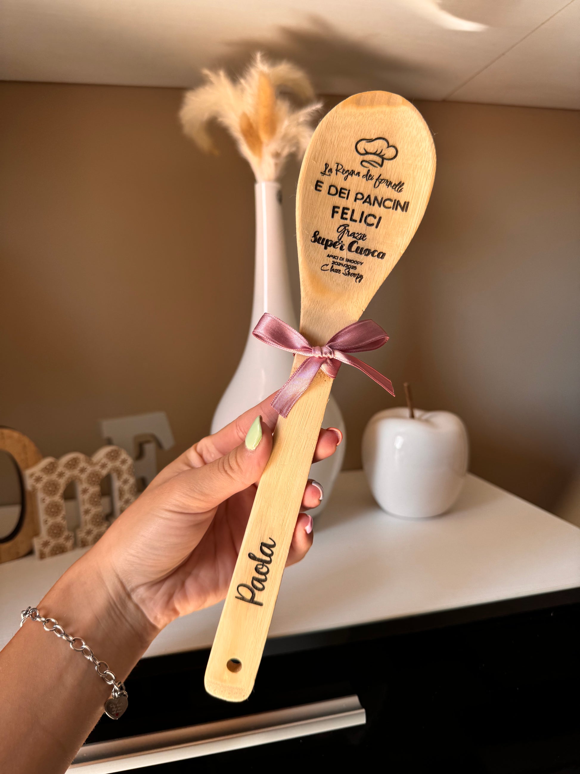 Un piccolo gesto che scalda il cuore: questo cucchiaio in legno personalizzato è il regalo perfetto per chi ama cucinare.