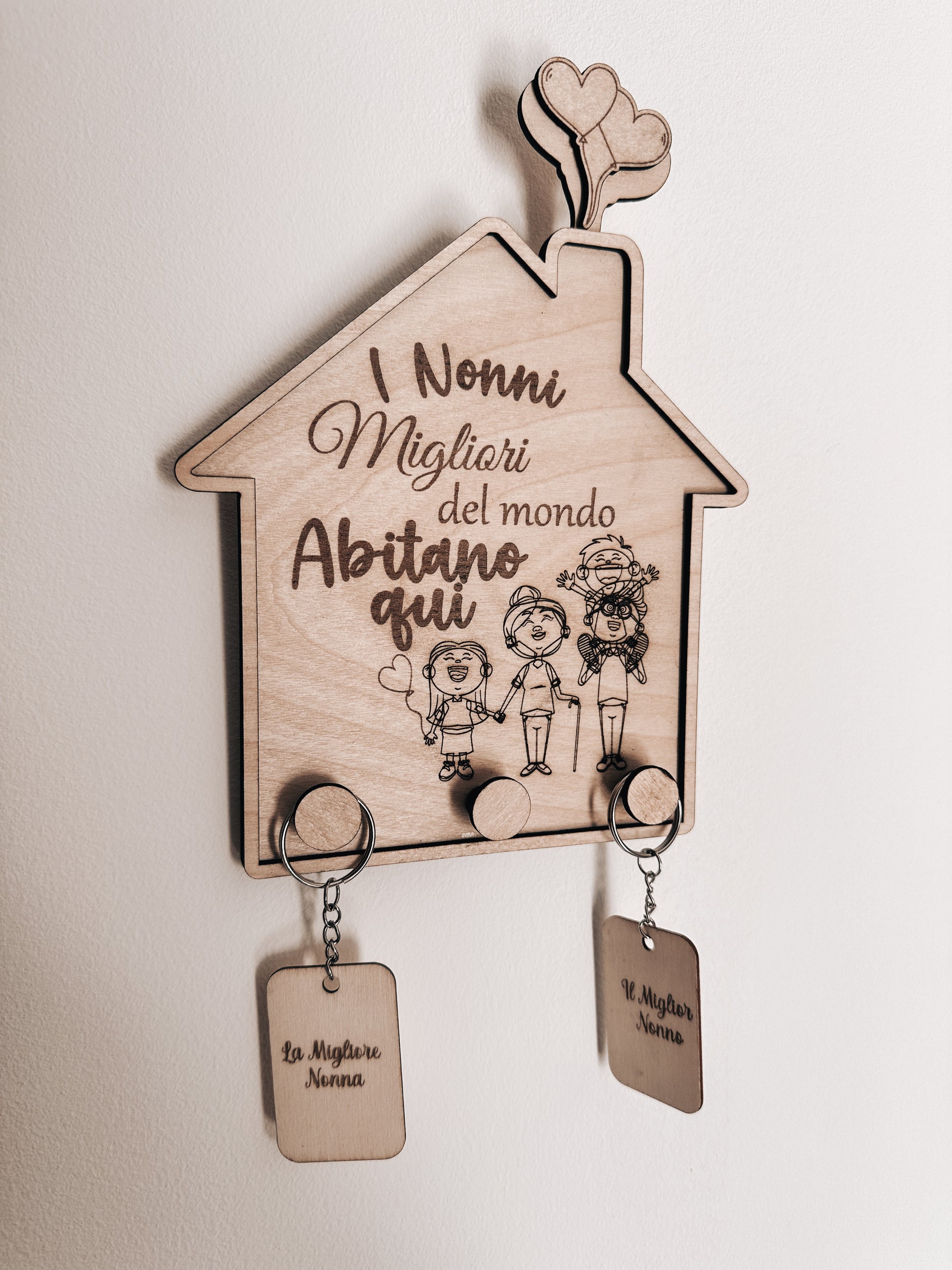 Portachiavi da parete in legno personalizzabile – Idea regalo nonni
